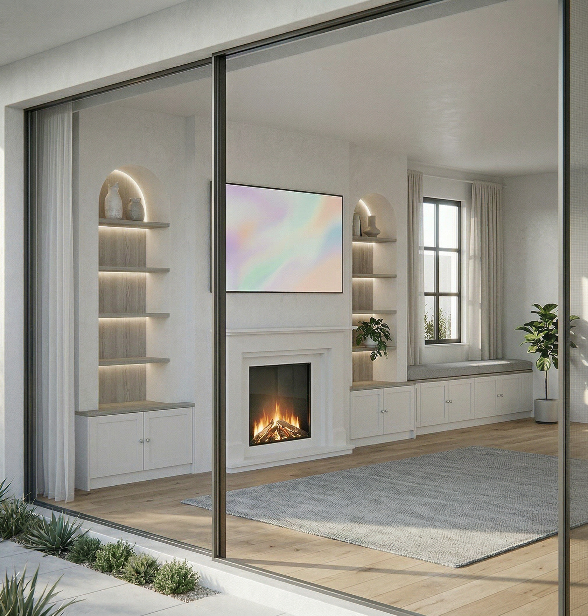 For more contemporary or architectural designs, we incorporate a fully plastered finish to achieve a seamless, built-in feel — as though the piece has always belonged there.